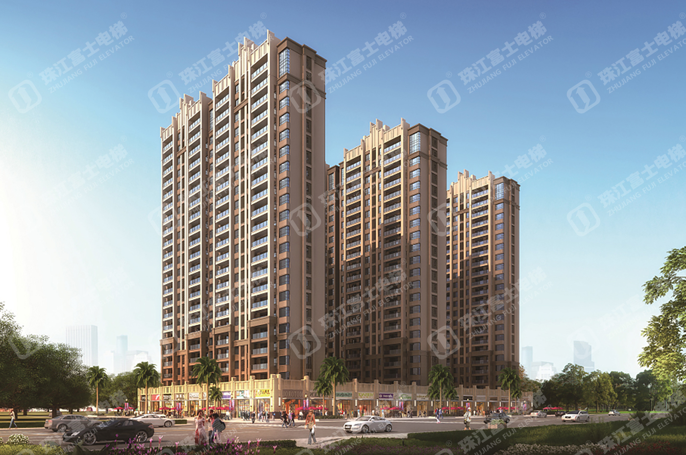 珠江富士電梯為該項(xiàng)目提供了12臺(tái)GSTK1050kg、1.5m/s的高速乘客電梯。