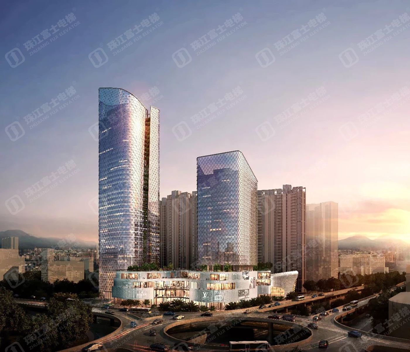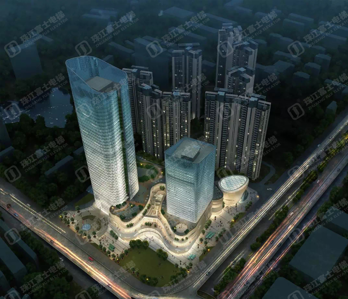 珠江富士電梯為該項(xiàng)目提供了14臺(tái)GSTK1050kg、2.5m/s的高速乘客電梯。
